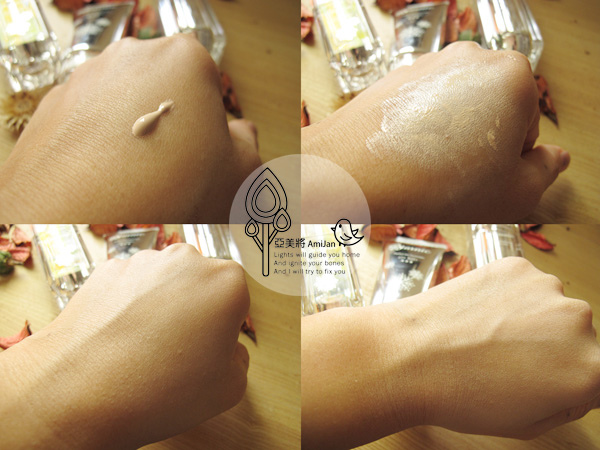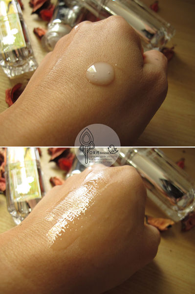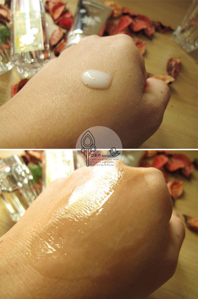 ↓質地非常柔細,容易推開,也感覺到細緻到很容易被皮膚給吸收進去!