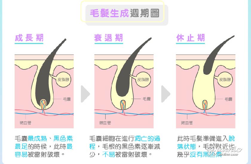 只有正處於成長期間的毛髮才能被有效破壞,